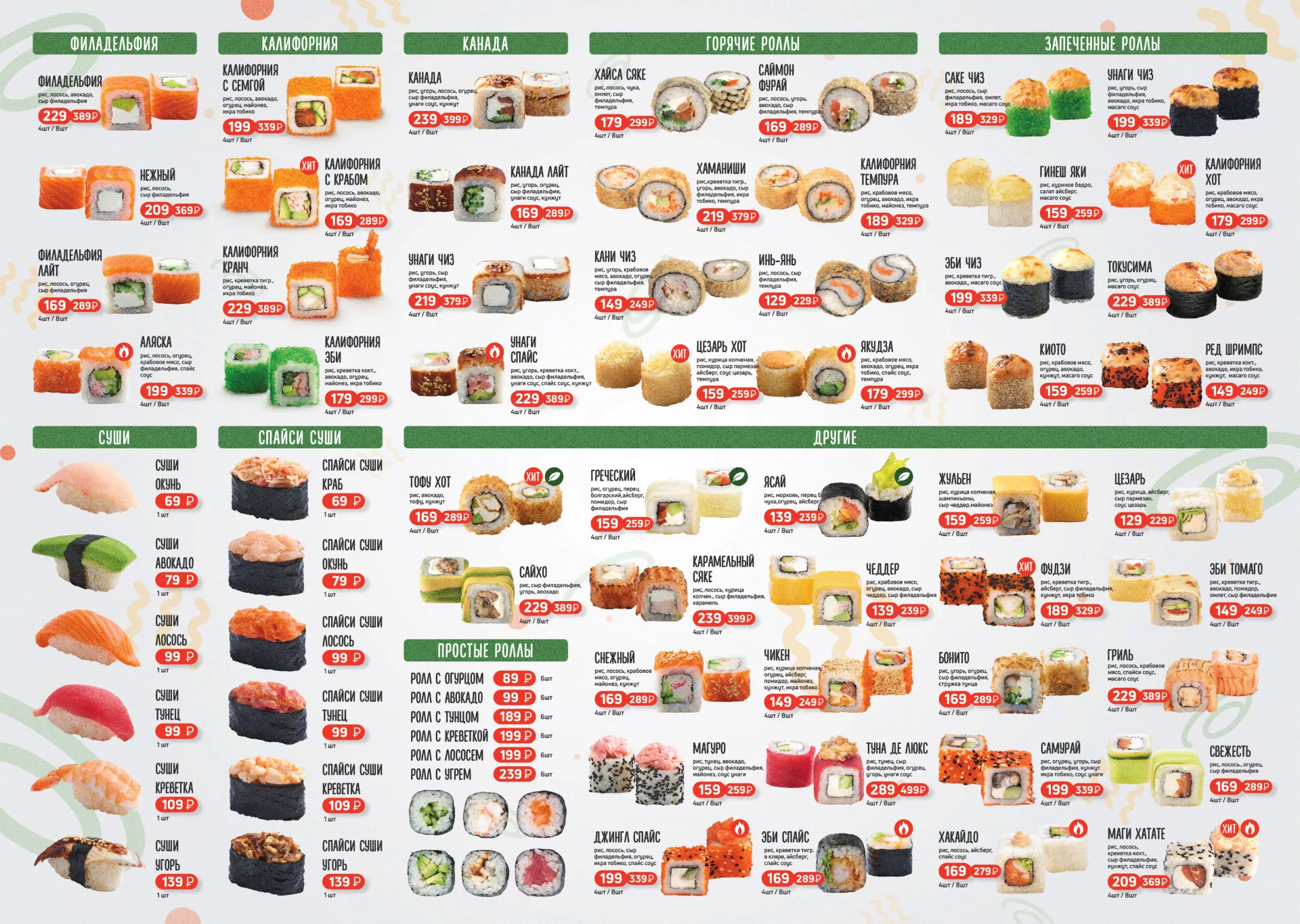Оформление меню для торговых точек суши-бара «Roll Wok Club» в Дальнереченске. Что является решающим фактором, влияющим на решение потратить деньги в ресторанном бизнесе, если клиент стоит уже у стойки заказа? Конечно, меню. Мы постарались сделать его максимально аппетитным!